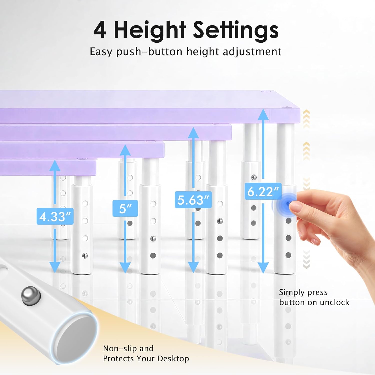 【4-Level Ergonomic Height Adjustment】: Customize your ideal viewing height with 4 adjustable levels, easily raising your monitor or laptop to a comfortable eye level. This ergonomic monitor stand helps reduce neck, shoulder, and eye strain during long hours of working, studying, or gaming.