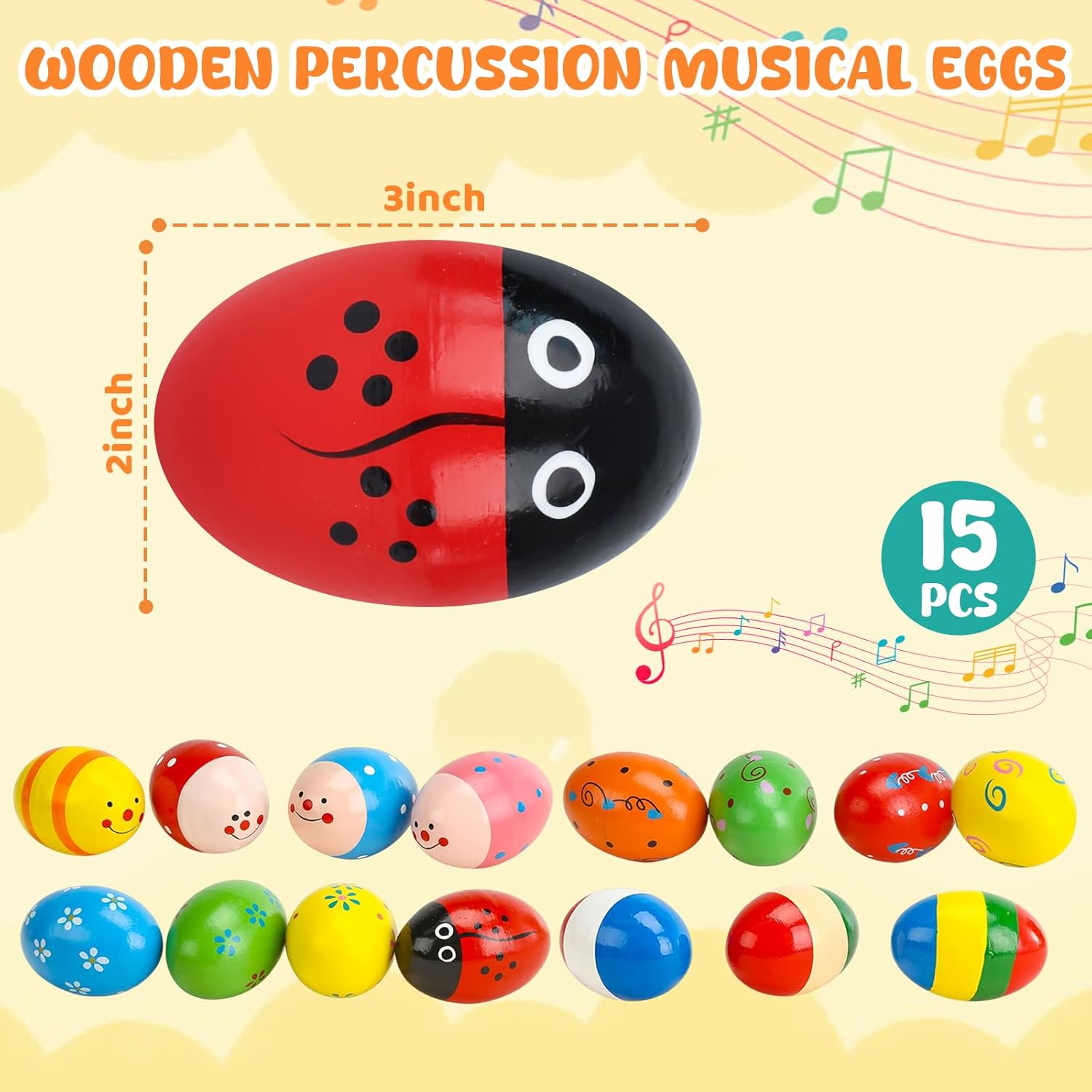 This set includes 15 wooden egg shakers, making it ideal for: