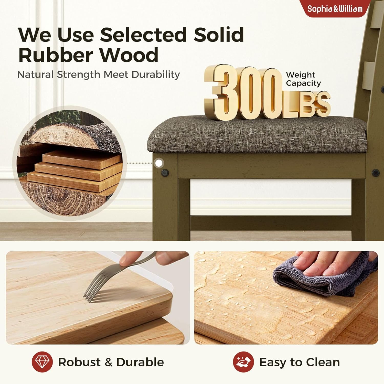 【High-quality Dining Table Set】Crafted from durable solid rubber wood and MDF,this kitchen table set promises lasting quality and stability. The thick tabletop resists scratches and daily wear, and the ergonomically designed chairs offer an unparalleled sitting experience.
