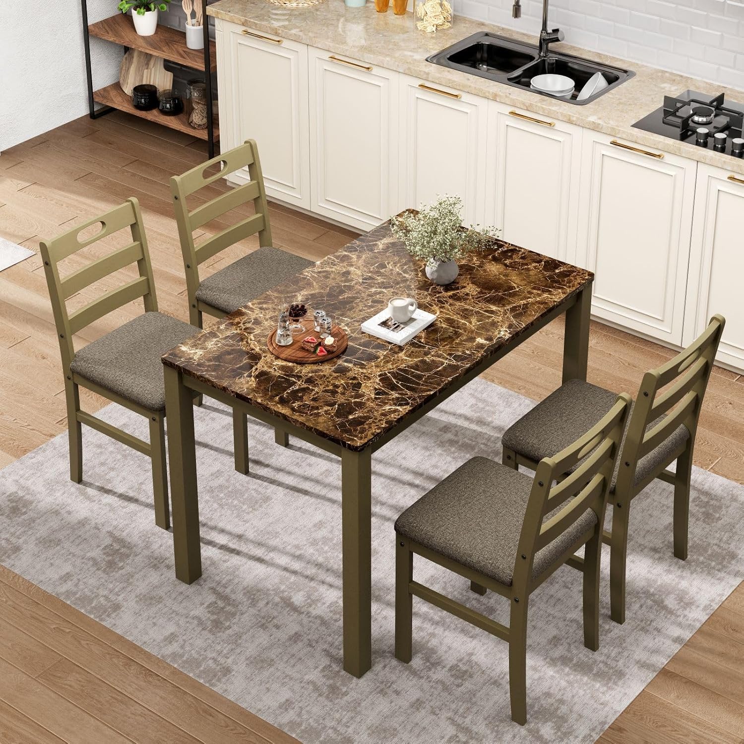 【Elegant Faux Marble】Crafted with a faux marble tabletop , this dining table set adds a touch of luxurious charm. With its elegant look, this wood kitchen table set elevates any dining area while providing functionality that meets all your needs and enhances your home decor.